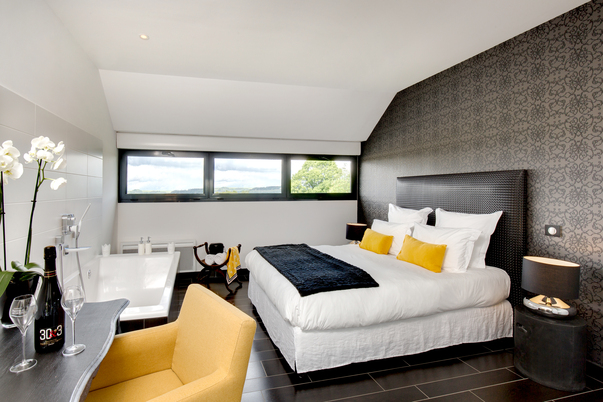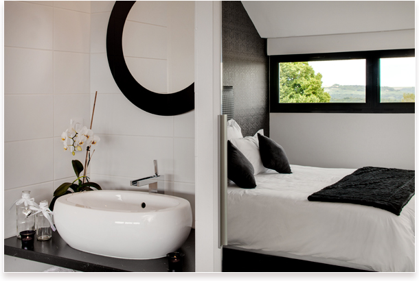 Dans une atmosphère sobre et raffinée mais coquine, la chambre de Clémence saura vous étonner par son lit king size (180 X 200 cm), confortable et moelleux, et sa salle de bain « Particulière ». Bien sûr, les sanitaires sont séparés.